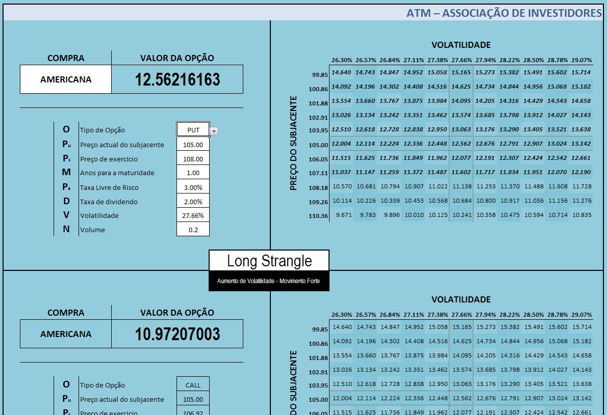 - Long Strap, que envolve a compra de duas opções (call e put), no sentido de aproveitar o aumento de volatilidade do ativo subjacente e quando existe uma probabilidade deste subir de preço;